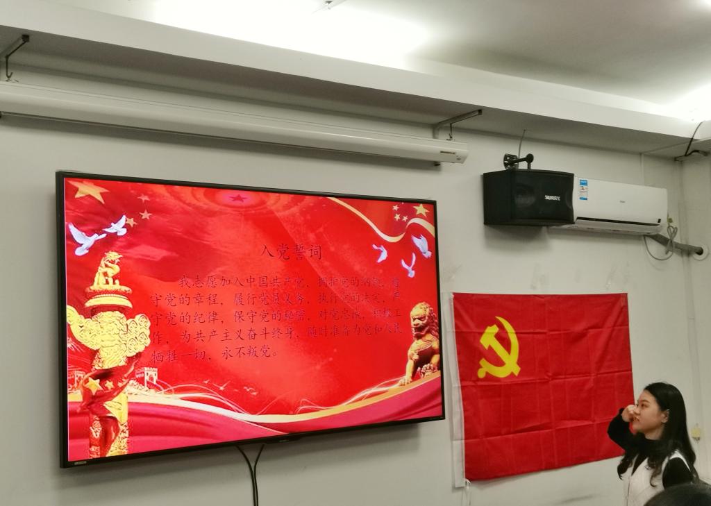 最后,大家在刘凯琳带领下重温入党誓词。全体党员举起右手,面对党旗庄严宣誓,重温入党初心,不忘党员使命。