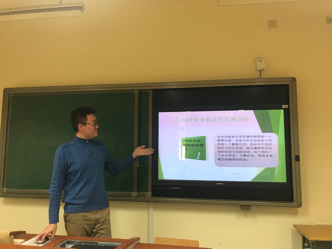 为全面贯彻落实中国共产党第十九次全国代表大会的精神,深入学习贯彻习近平总书记给南开大学新入伍大学生的重要回信精神。阿尔巴尼亚语班班团支部在院党委、院团委的领导部署下,在院团总支的的具体指导下,继续广泛、深入地开展大学生社会实践活动,并于2017年11月13日于逸夫楼开展了“学习党的十九大精神,暑期社会实践感悟分享”主题班会。