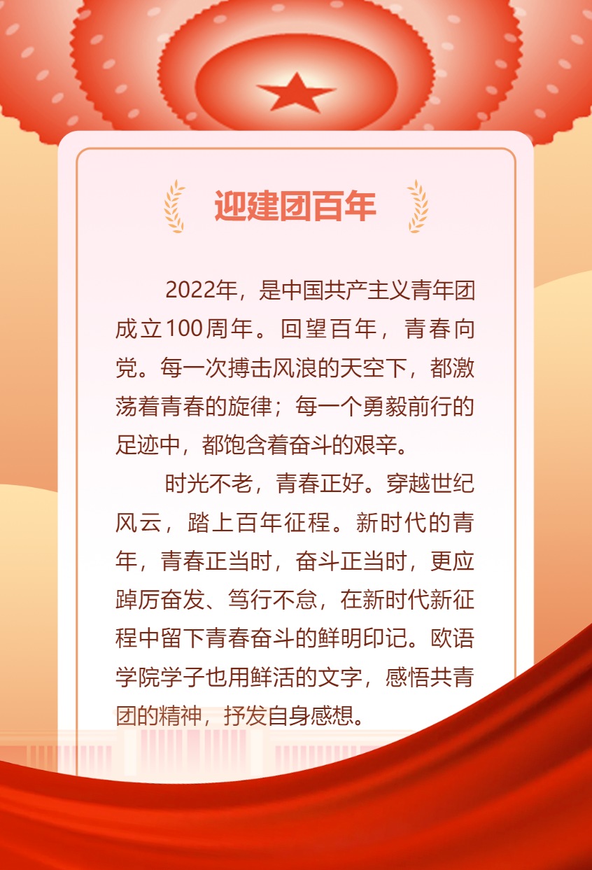 2022是中国共产主义青年团建团100周年,是历史性的一刻。共青团的百年是艰辛、充满挑战的,即便如此共青团也仅仅的跟随党的步伐,向着中华民族的伟大复兴道路高歌猛进,不仅如此,共青团弘扬着五四爱国精神,续写着先辈青春奋斗新篇章。