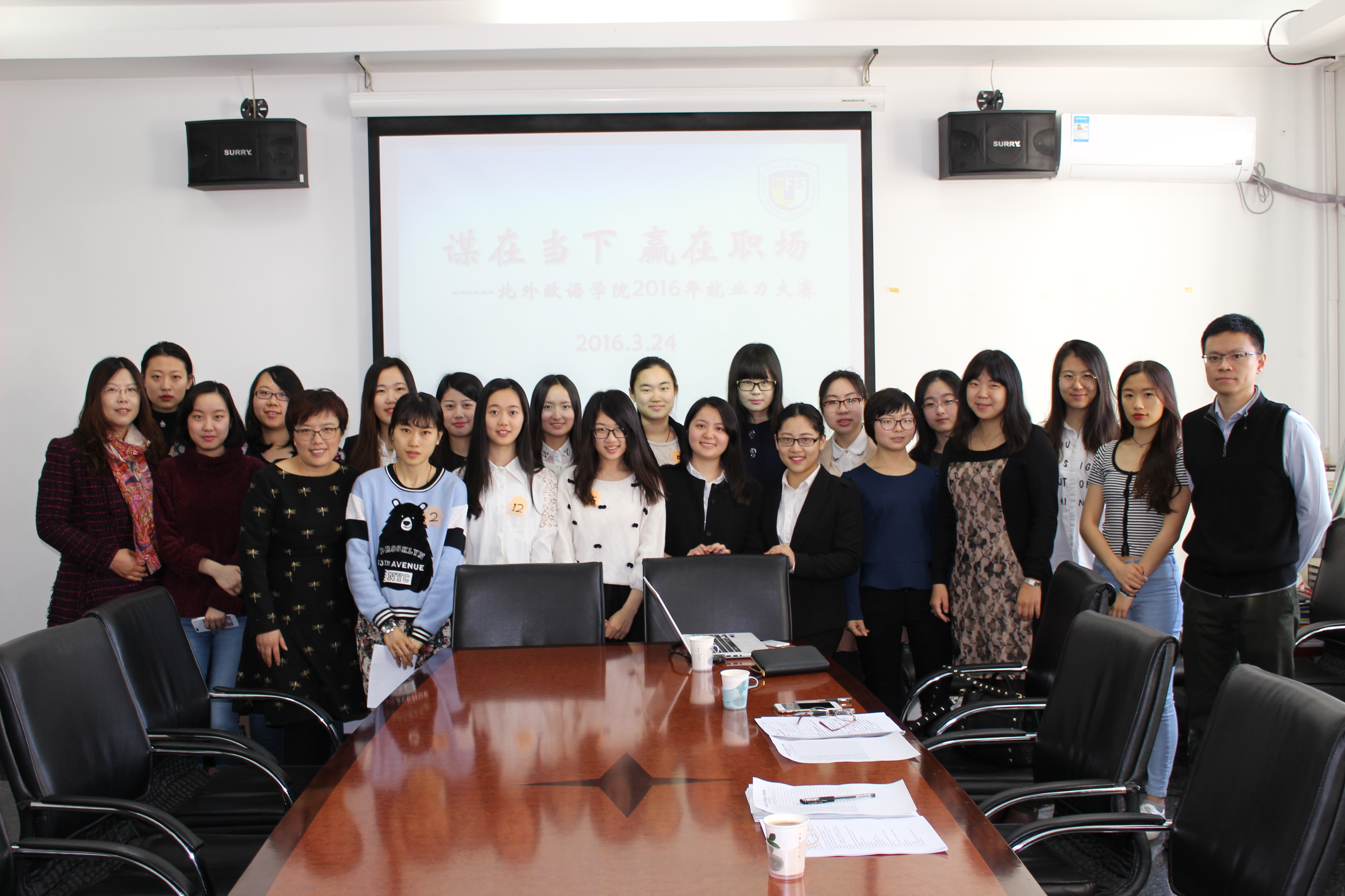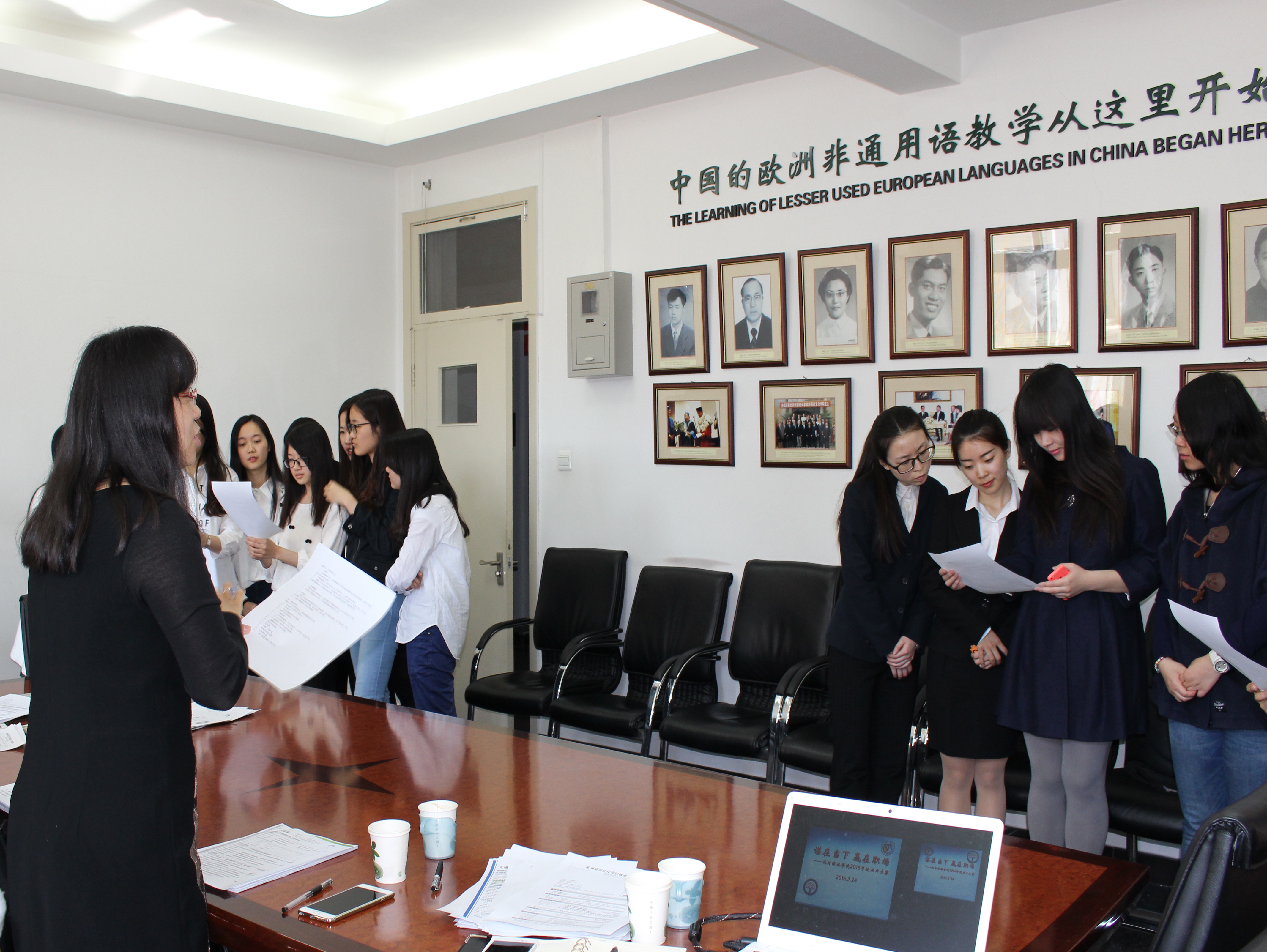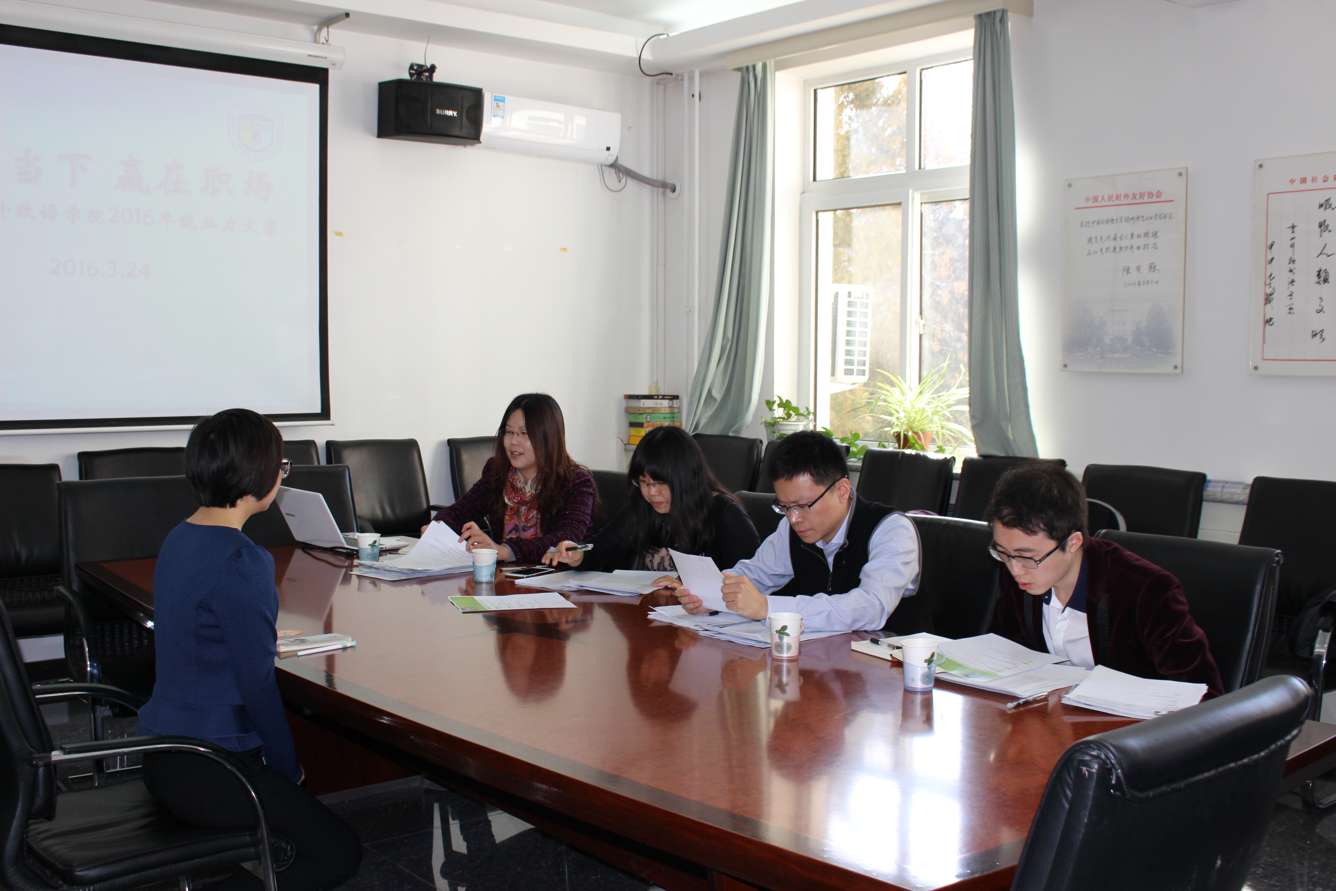 2016年3月24日上午8:30,欧洲语言文化学院就业力大赛之模拟面试在主楼307会议室顺利举行。经过之前严格的简历甄选,二十几名大三同学脱颖而出,成功进入此次就业力大赛的面试环节。担任面试考官的是我校校友、拥有丰富考录经验的北京络威尔(Novell)软件有限公司(英)东亚区资深人力资源经理平菲老师、外交部干部司考录处副处长马跃老师、鹰徽教育创始人兼CEO夏坤老师和太阳成集团tyc41183党总支副书记杨文老师。北外学生处副处长、就业指导中心主任孙眉老师亲莅现场指导工作。