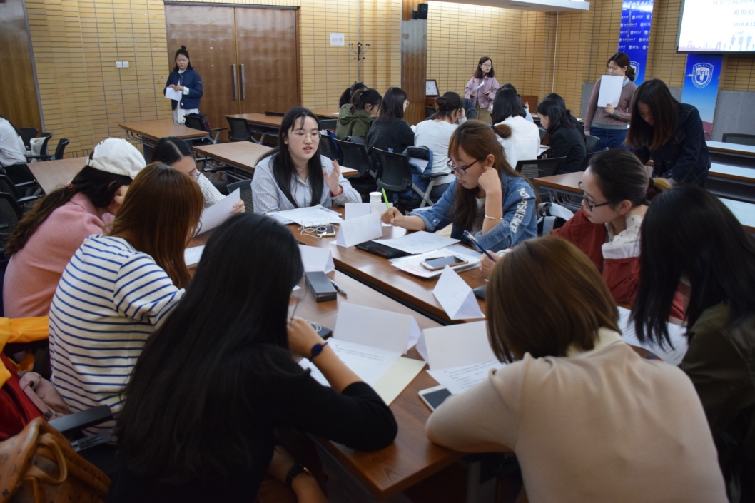 群面环节以无领导小组的形式展开。同学们分为三组,首先由每位同学轮流对面试问题进行一分钟的观点阐述,接着每组同学对这个问题展开了激烈的讨论。在短短45分钟的讨论中,大家各抒己见,比赛气氛十分热烈。