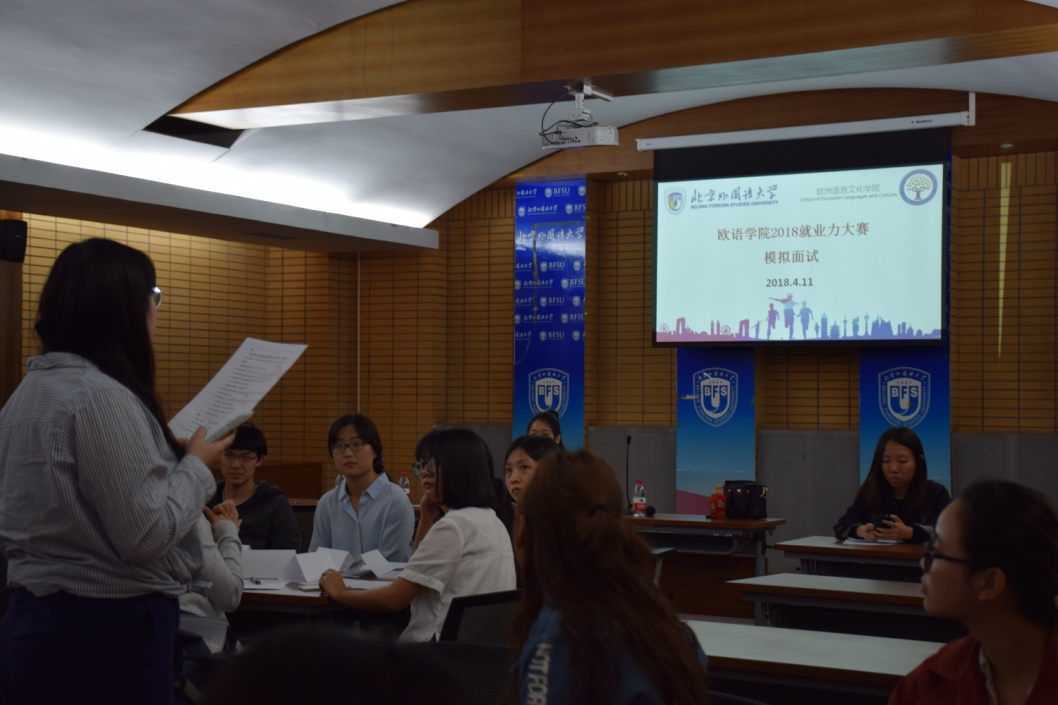 在单面环节,参赛选手根据自己的经历,进行限时自我介绍,同时回答面试官的提问。在此过程中,面试官根据参赛选手的表现提出具有个性化的指导建议,同时指出参赛者的优点与不足。在单面过程中,参赛选手充分展现了欧语学子积极向上的良好风貌,受到了在座评委的充分肯定和赞赏。同学们在老师的点评和建议里第一次从面试官的角度审视自己的表现,受益匪浅,也更加懂得了如何在今后有的放矢,提高自身综合素质。