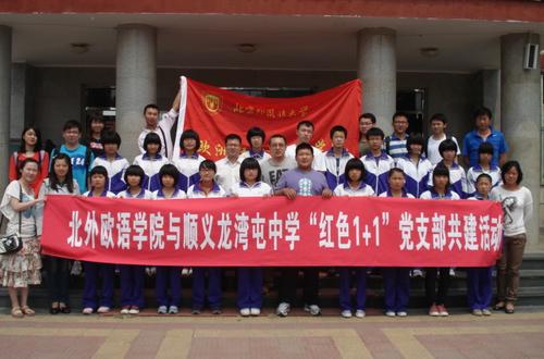 为了弘扬雷锋精神,引导大学生党员了解国情,树立正确的人生观、价值观,投身社会志愿服务,欧洲语言文化学院学生党支部积极响应学校关于开展“红色1+1”支部共建活动的号召,在学院党总支的领导下,深入京郊农村,与顺义龙湾屯中学党支部开展了“红色1+1”共建活动。