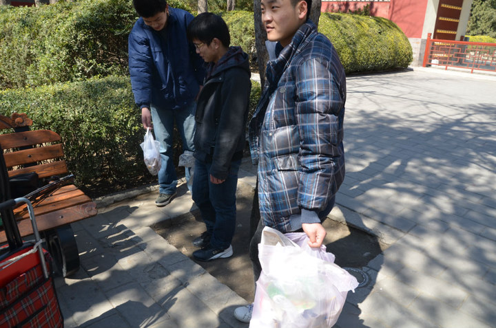 为了使活动更有秩序,大家在门口进行了简单分组:海报组负责宣传,捡垃圾组负责清理公园内的流动垃圾。