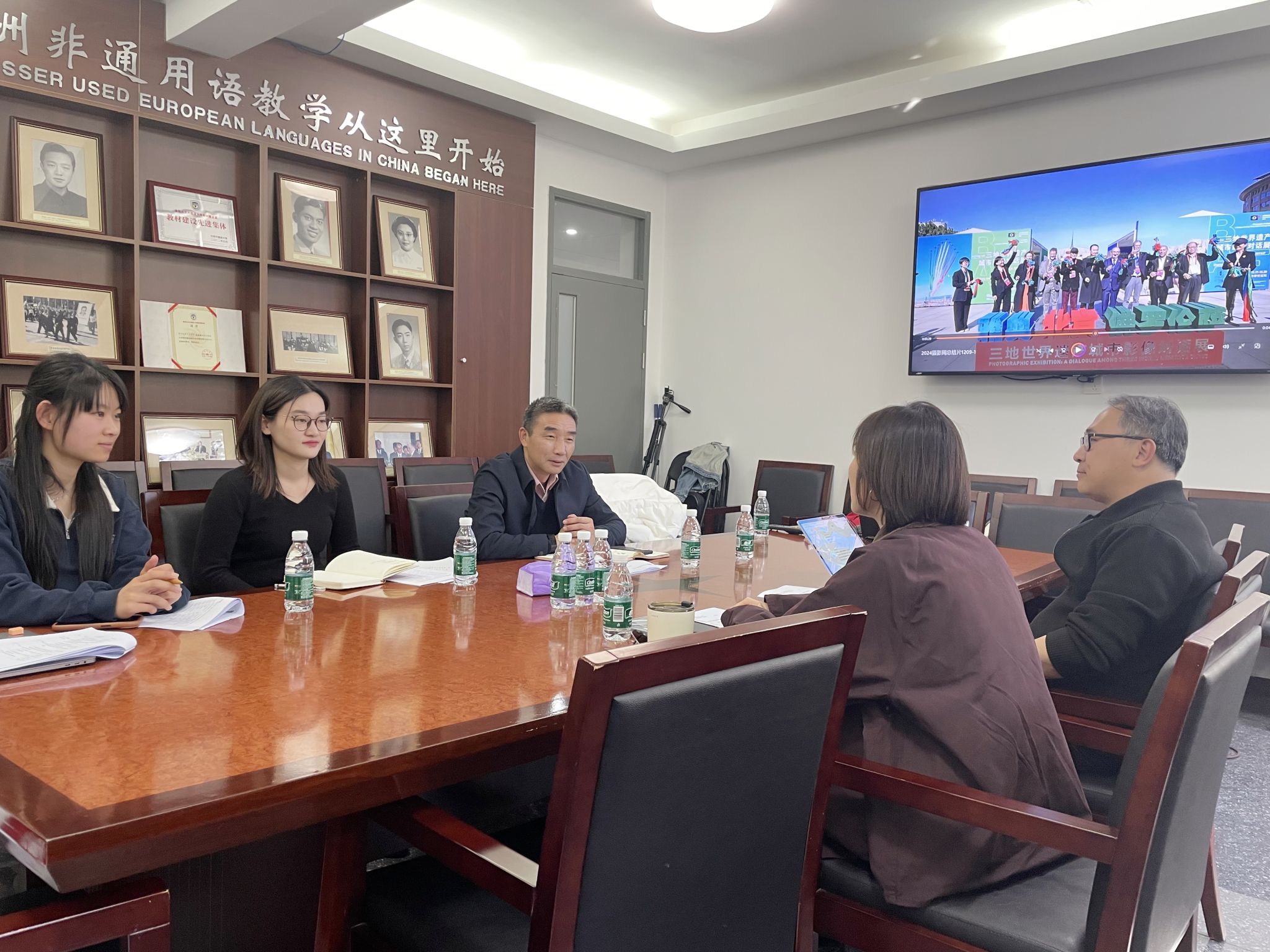 3 月 20 日下午,北京国际摄影周组委会、北京国际艺苑摄影基金会秘书长金铮、中华世纪坛艺术基金会秘书长于沛然一行访问太阳成集团tyc41183,围绕党建工作引领下的教育美育合作、服务首都国际交往中心建设、指导学生创新创业展开深入交流,大学生创新创业训练计划项目《影链丝路:高校一会展协同创新视角下面向Z世代的国际影像传播机制与实践研究——以北京国际摄影周为例》予以指导。