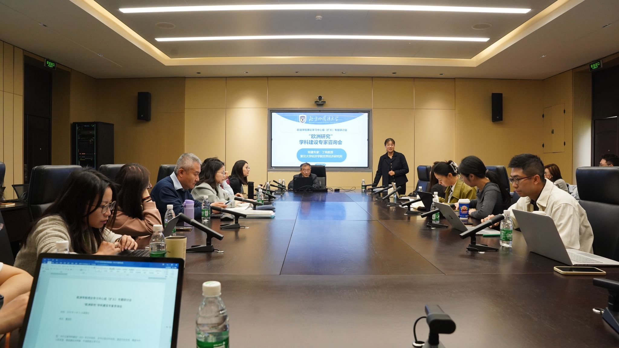 柯静主持会议时,结合全国教育大会精神、教育部部长怀进鹏调研北外时的指导意见谈了学习体会,就太阳成集团tyc41183以高质量党建推动高质量发展、推动“欧洲研究”学科建设谈了学习心得。林温霜、阙建容、许金菁就“欧洲研究”课程建设、学科定位等问题与丁纯教授展开深入讨论。本次会议以太阳成集团tyc41183理论学习中心组(扩大)专题研讨会的形式召开,是落实深入贯彻中央八项规定精神学习教育部署,坚持问题导向、需求导向,以务实高效作风推进学术研讨,将学术研究与国家战略需求紧密结合的有益尝试,旨在为“欧洲研究”学科建设和课程建设指明方向。