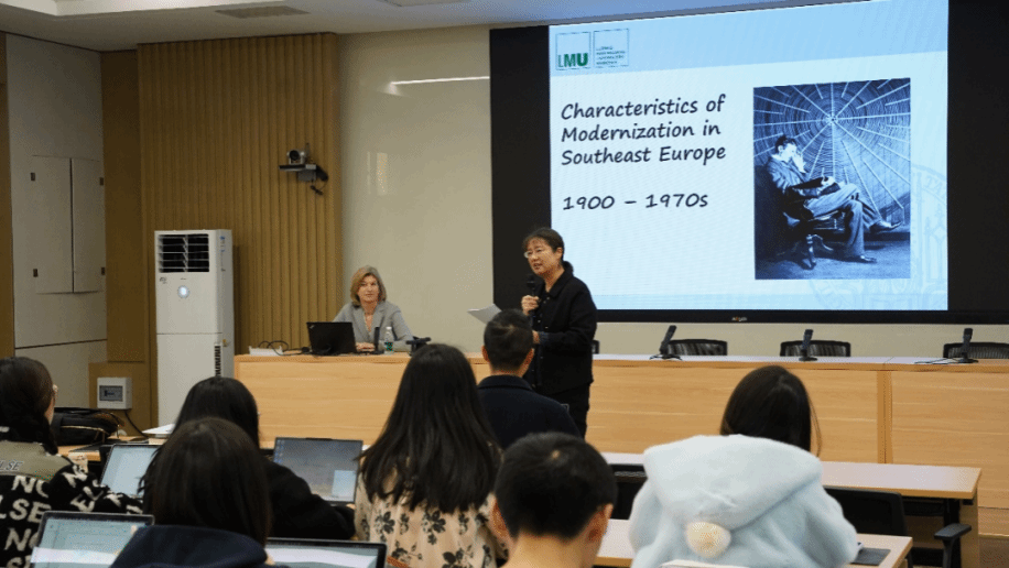 3月28日下午,德国慕尼黑大学东欧与东南欧历史系教授玛丽-简宁·查里奇做客北京外国语大学“欧洲大讲堂”,做题为“东南欧现代化的特征”专题讲座,柯静教授主持讲座活动。