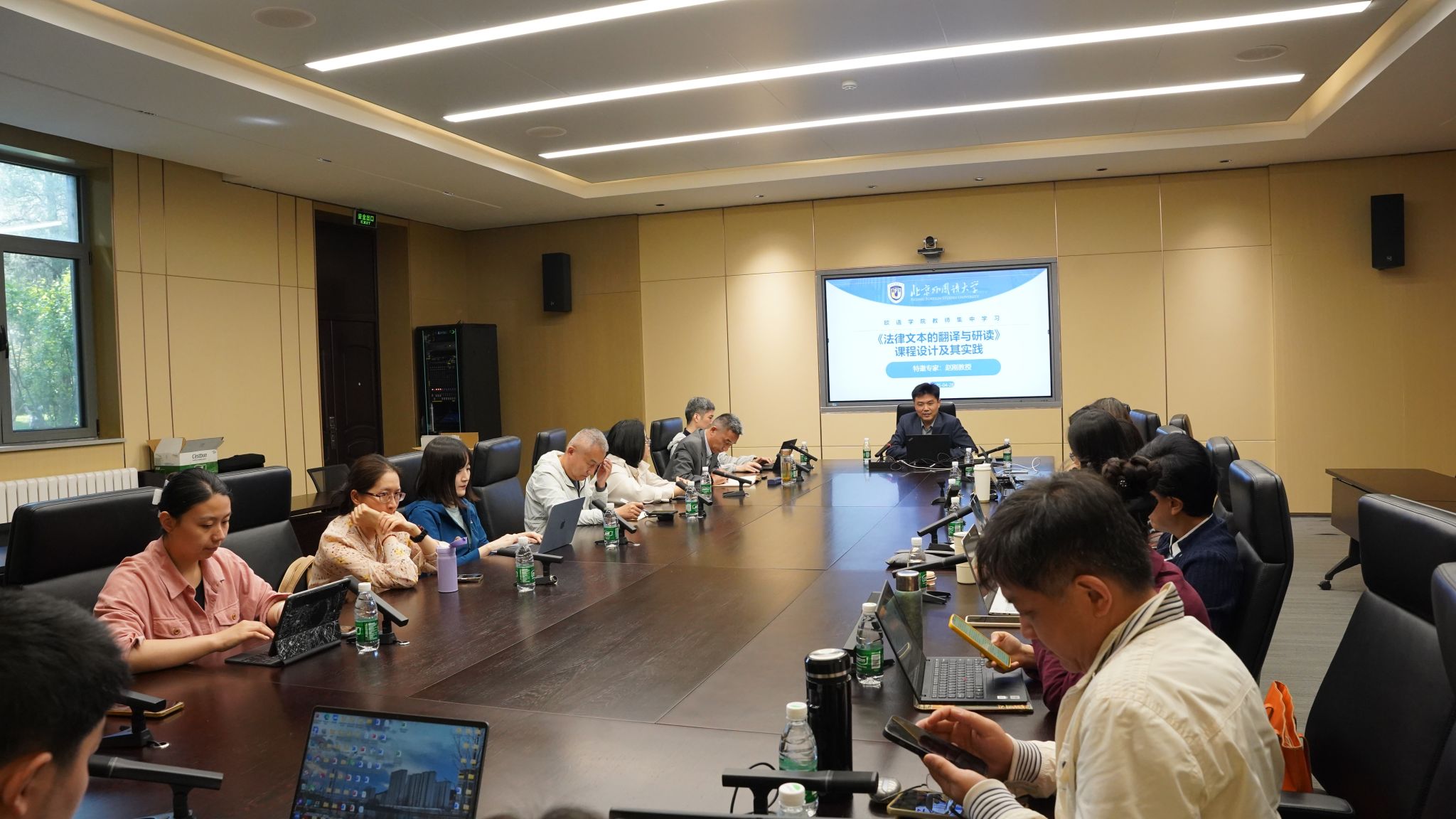 4月28日下午,太阳成集团tyc41183在暮思厅举办“《欧洲法律》课程与学科建设”教师集中学习研讨活动,党委常委、副校长赵刚教授参加研讨,以“《法律文本的翻译与研读》课程设计及其实践”为题作专题辅导。