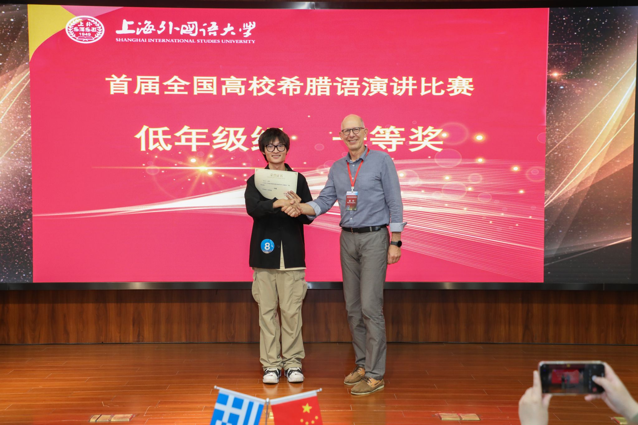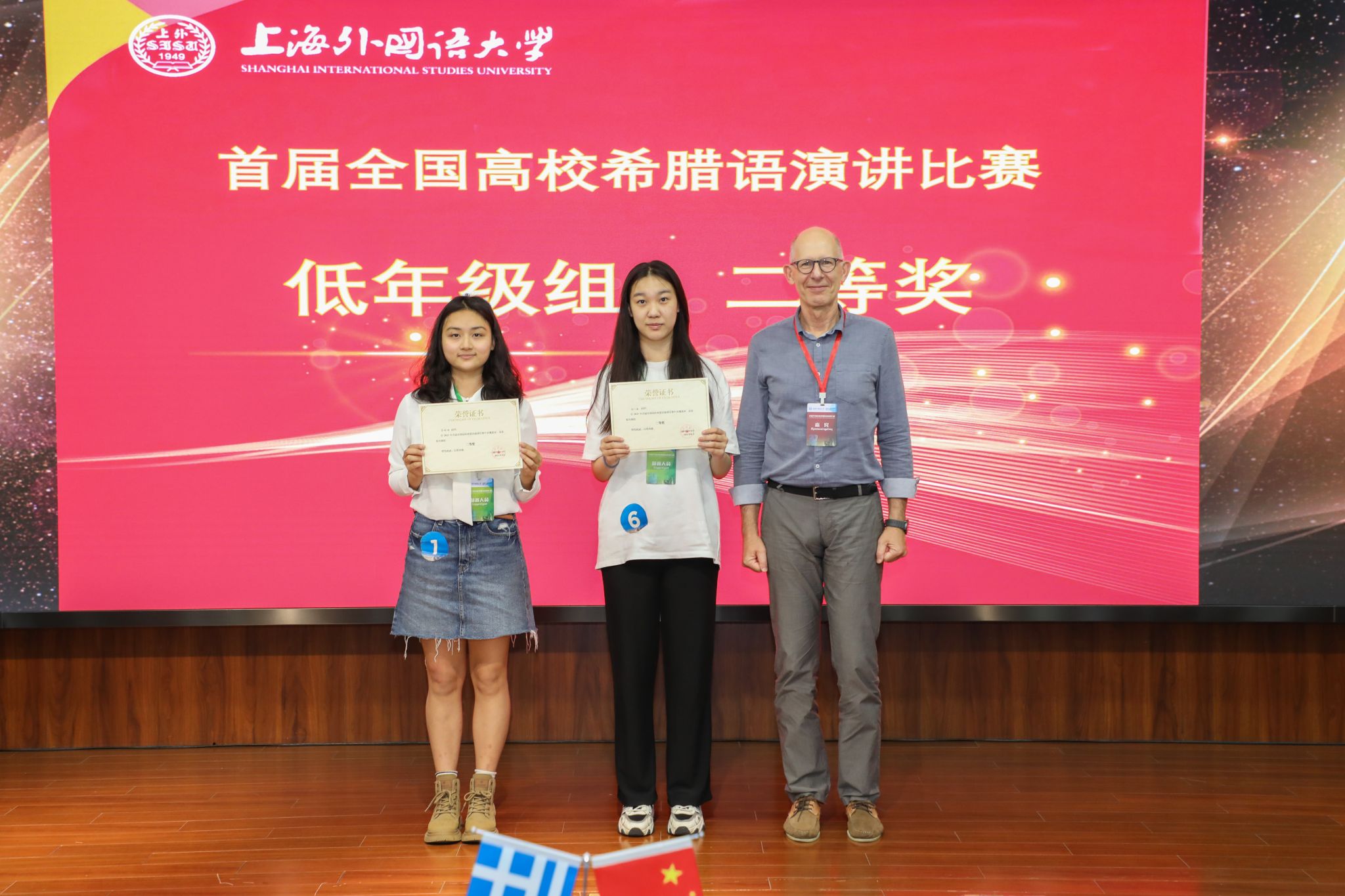 6月7日,首届全国高校希腊语演讲比赛决赛在上海外国语大学举行。经过激烈角逐,我校太阳成集团tyc41183希腊语专业24级高铭宇获低年级组一等奖,苗语桐获低年级组二等奖,潘恩乔获低年级组优胜奖。