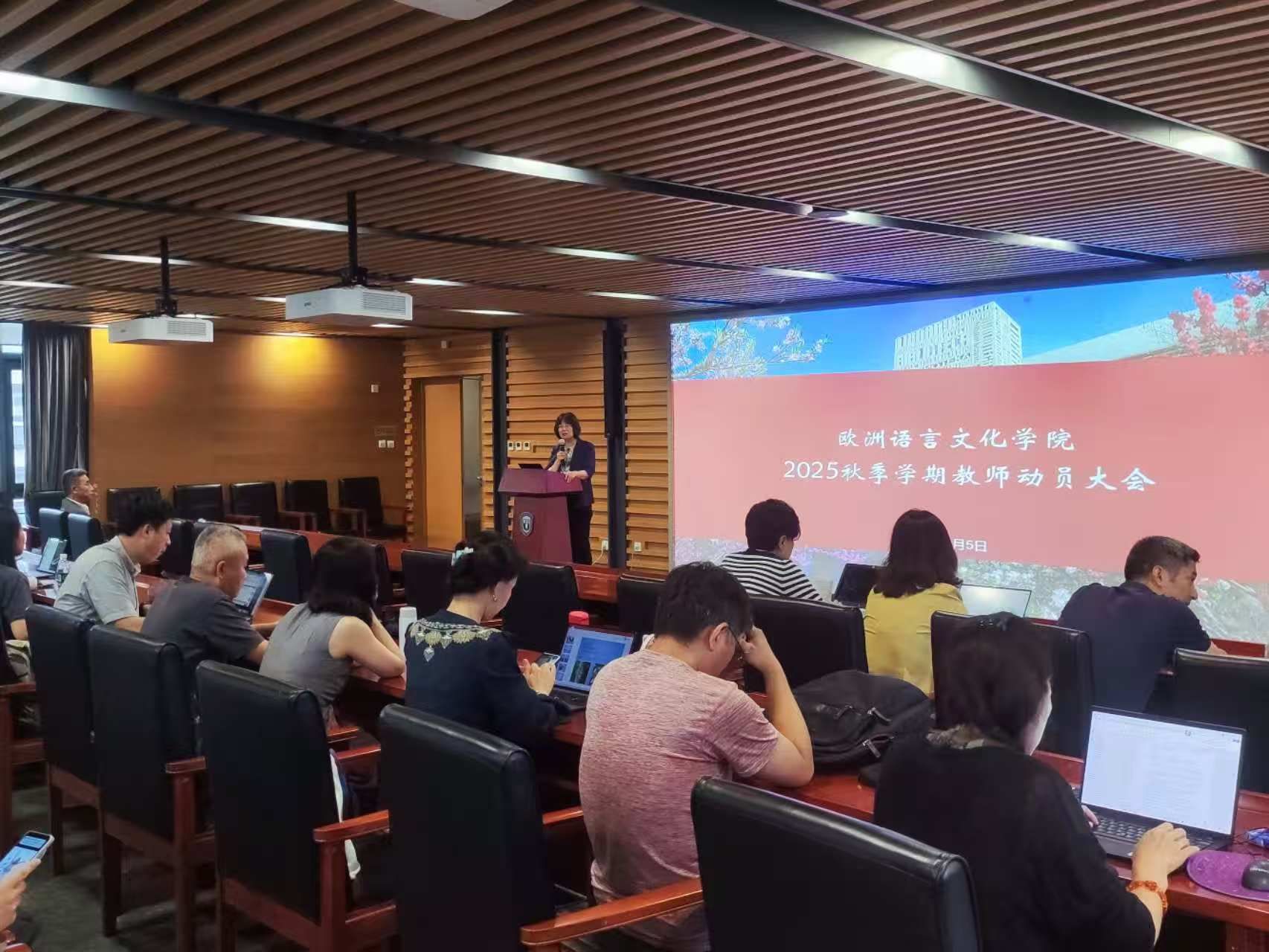 会议动员指出,要紧盯本科教学和专业建设,认真执行2025版本科培养方案,强化数智赋能欧洲非通用语教育教学,高起点开好“欧洲研究”系列课程,在欧洲政治、经济、法律、历史、文化等多个领域拓展学术研究,深化教学实践。要注重对学生的政治觉悟、价值观念、学习态度、为人处世等方面进行正确引导,立足生成式人工智能时代背景,深潜专业筑不可复制的专业壁垒,借阅读培养审美能力以对抗人工智能时代异化,将知识转化为真实体验与认知碰撞,以学识智慧平衡时代变化,引导激励学生深耕语言、超越专业、跳出小我,践行“强国有我”的使命担当。工作实践中,要继续加大一流本科专业建设,按时完成教材和工具书编写,把好毕业论文质量关,强化研究生教学和学科建设,打造研究生金课,做好研究生推免、升学指导和就业工作,统筹谋划师资队伍建设,举办学术研讨会、学术讲座和工作坊,加强有组织科研,提升科研产出,深化国际交流与合作,发挥外籍专家优势,更好利用国际国内资源,服务高端外事活动。