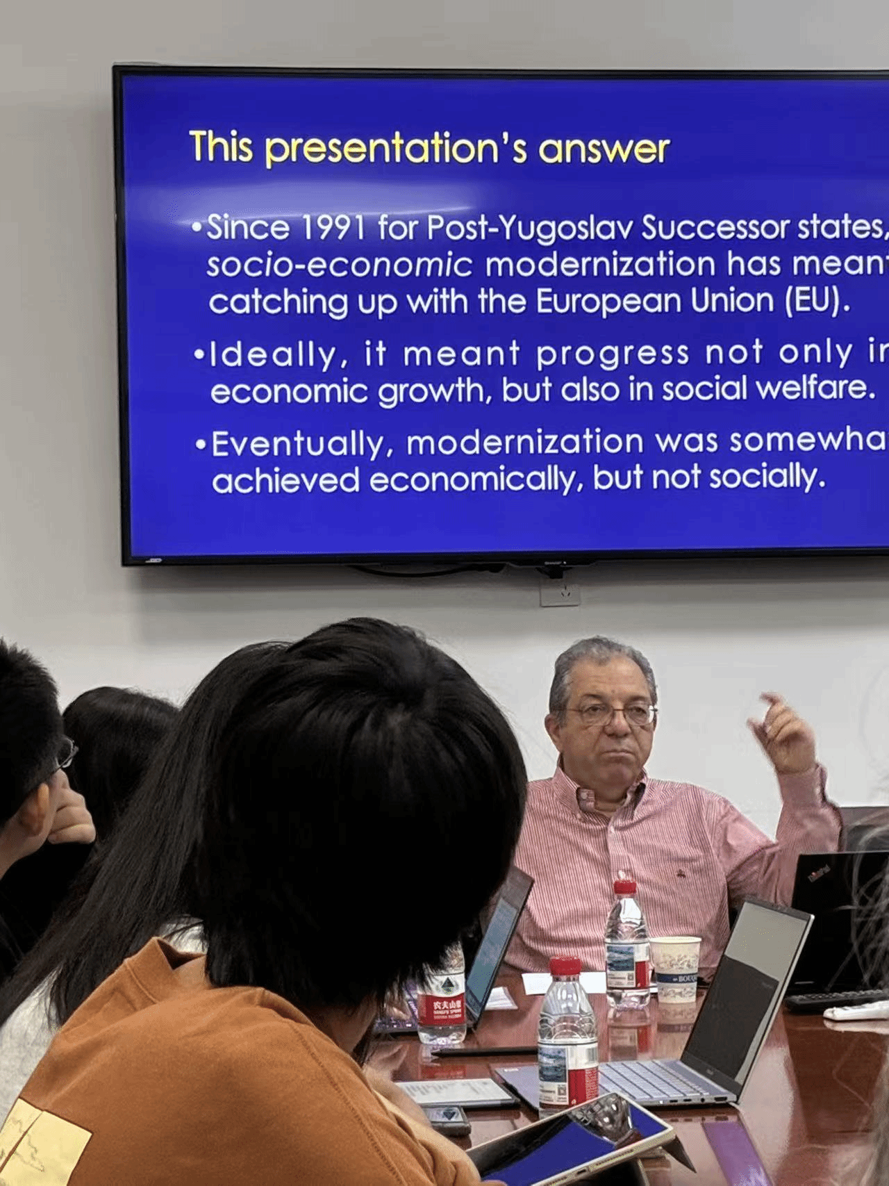 20世纪90年代爆发的南斯拉夫战争导致南斯拉夫社会主义联邦共和国解体,从前南斯拉夫分裂出的七个独立国家和地区——斯洛文尼亚、克罗地亚、塞尔维亚、黑山、北马其顿、波黑以及科索沃(地区),在地区冲突和动荡的背景下推进现代化进程。针对这一进程,索蒂罗普洛斯教授在讲座中提出了两个问题:其一,社会经济现代化的本质内涵是什么?其二,在 21 世纪的时代背景下,社会经济现代化在前南斯拉夫国家中呈现出怎样的实践形态?