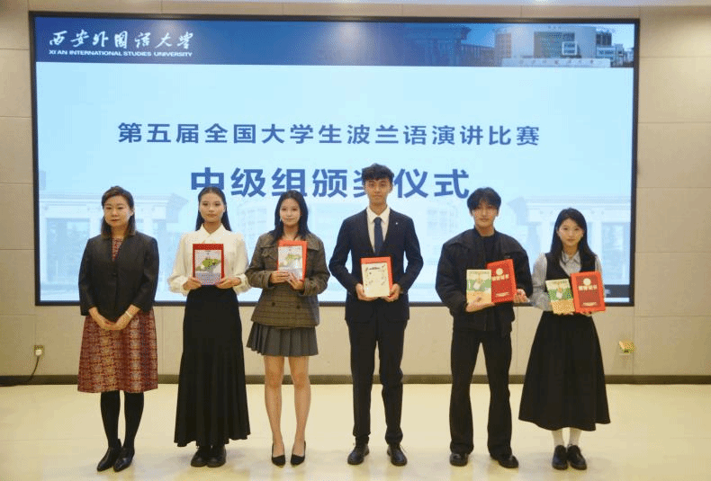 在第五届全国大学生波兰语演讲比赛中,孟婧轩、王欣然分获高级组和中级组一等奖,孙嘉远获得中级组二等奖。