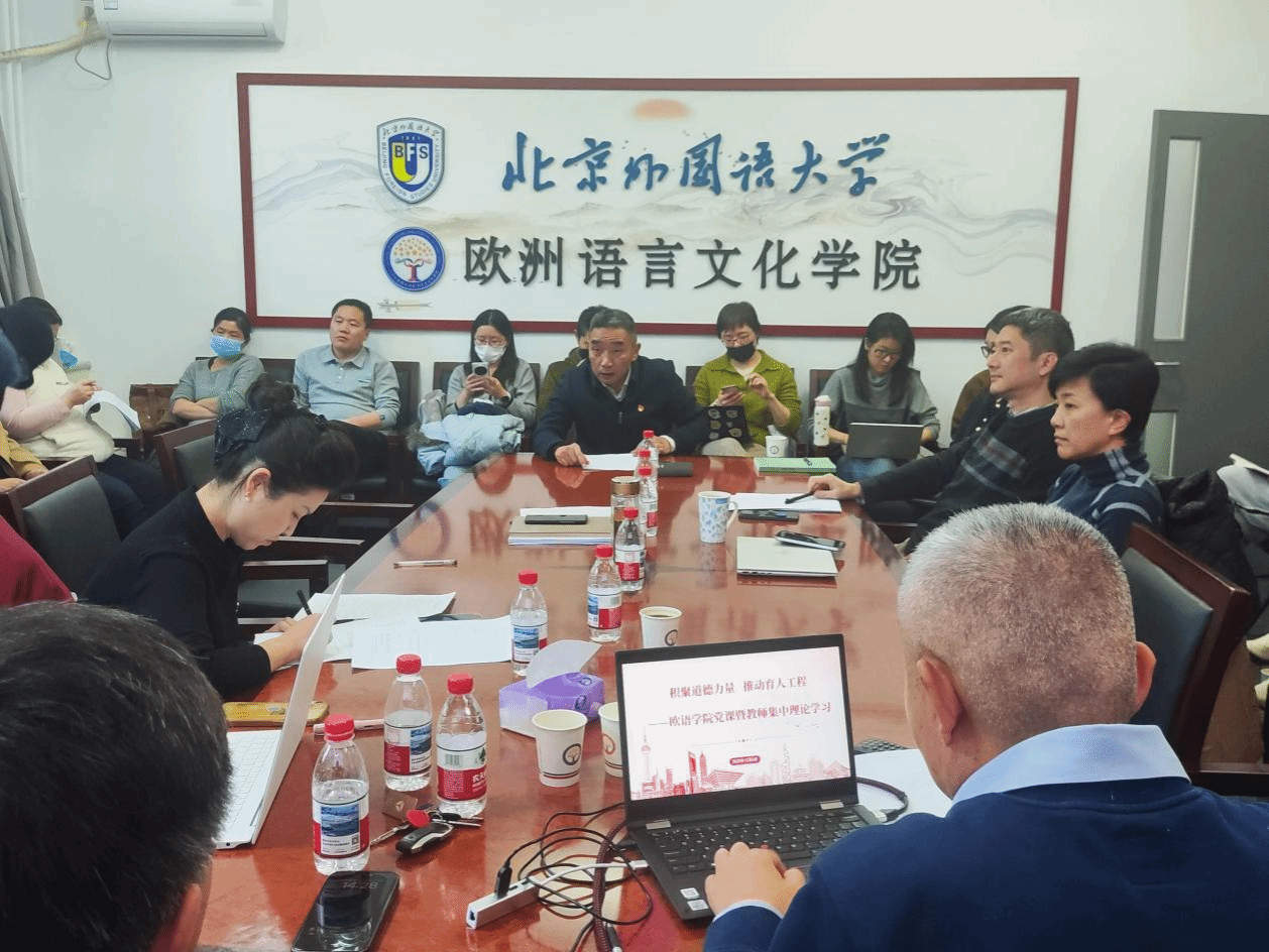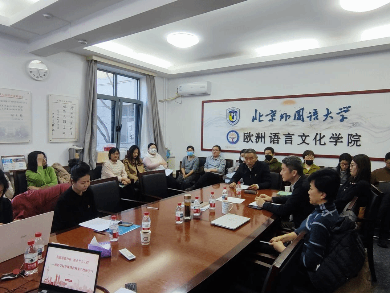 他指出,当前,全校正在深入学习贯彻习近平总书记关于教育的重要论述和党的二十届四中全会精神,按照学校党委工作要求,学院党组织全面落实教育部和北京市委教育工委工作部署,正在全面推进新时代立德树人工程。支部全体党员必须坚持立德树人根本任务,时刻牢记“四有好老师”“四个引路人”的要求。要以教育家精神铸魂强师,以教育强国建设支撑中国式现代化和中华民族伟大复兴。要将社会主义核心价值观融入教育教学全过程,为培养具有家国情怀、全球视野和专业本领的高水平欧洲非通用语人才筑牢思想根基、提供价值引领。