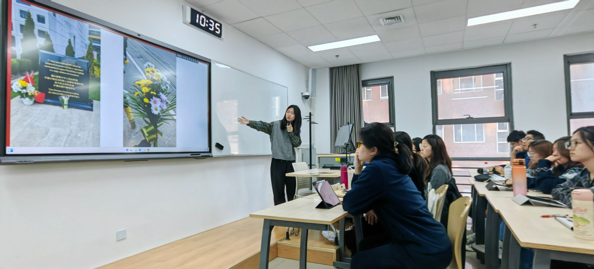 塞尔维亚语教研室主任彭裕超用中塞双语作为教学语言,与同学们一起研读中共中央总书记、国家主席习近平在访问塞尔维亚期间发表的重要讲话和专题文章,带领同学们用塞尔维亚语朗读核心段落。他回顾了中央电视台多视角的新闻纪实和专题报道,分享了自己于2009年往中国驻南联盟大使馆轰炸废墟时拍摄的照片。他深情介绍了三位烈士的经历,讲述自己在贝尔格莱德参观中国驻南联盟使馆遗迹的感受与触动,深切感受到两国人民由“血与火”铸就的深厚情谊。