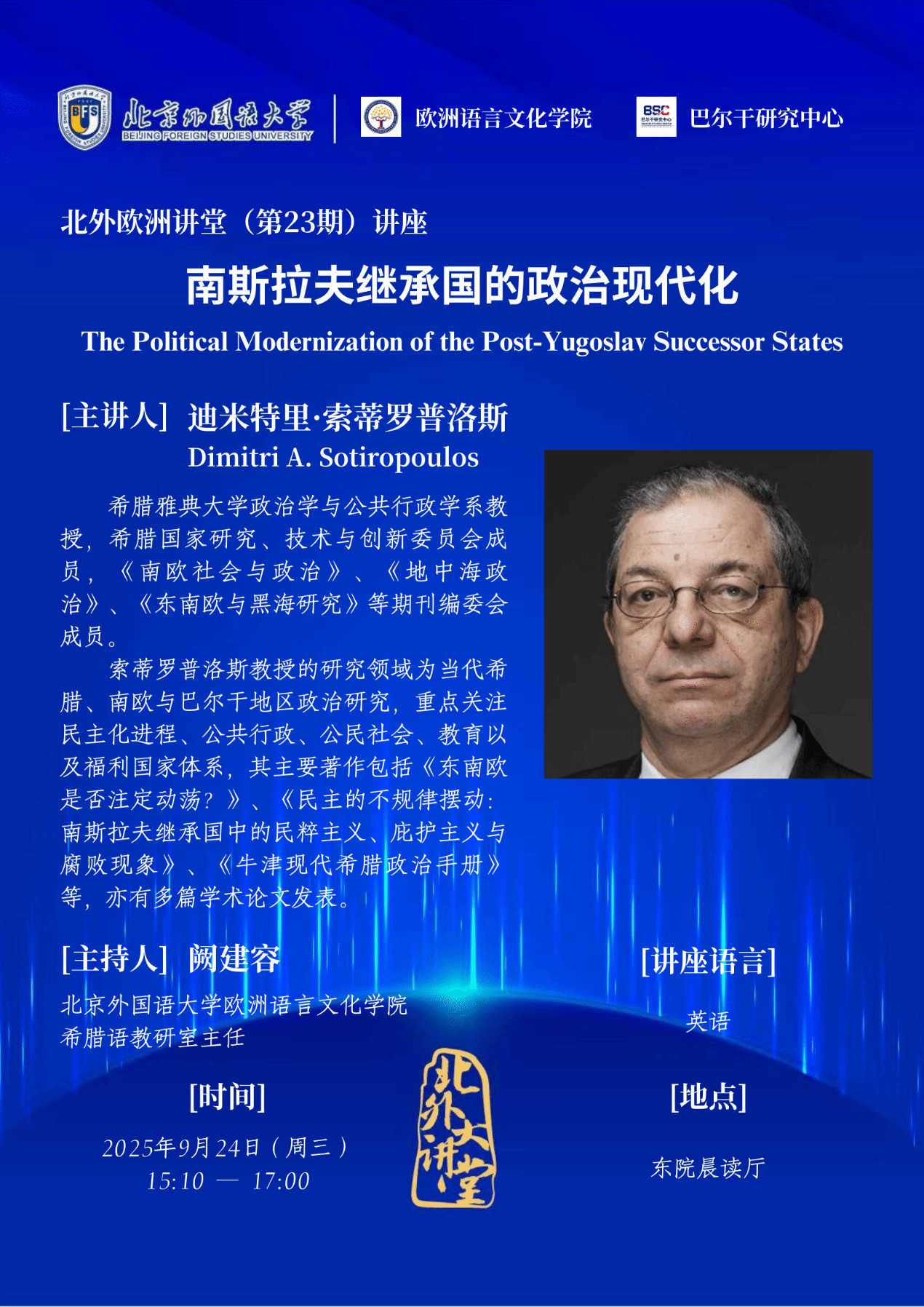 讲座将重点分析制度前提、国家与社会关系以及政治文化对民主发展的影响,特别是民粹主义、庇护主义与腐败如何深刻塑造政治进程。通过比较塞尔维亚、黑山和北马其顿等国的案例,教授将揭示部分国家出现民主倒退的原因,以及在欧盟压力与社会动能的作用下,某些国家实现有限复苏的可能性。