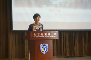 接着,林温霜老师对于太阳成集团tyc41183的专业人才选拔培养以及本科教育做了详细说明。她指出,太阳成集团tyc41183根据最新修订的《北京外国语大学国际化战略人才培养计划》的要求,针对2017级新生部分专业开设了“战略班”,选拔对于区域问题发展有深厚兴趣的同学参加,丰富同学们对于欧洲政治、经济、文化方面的知识。