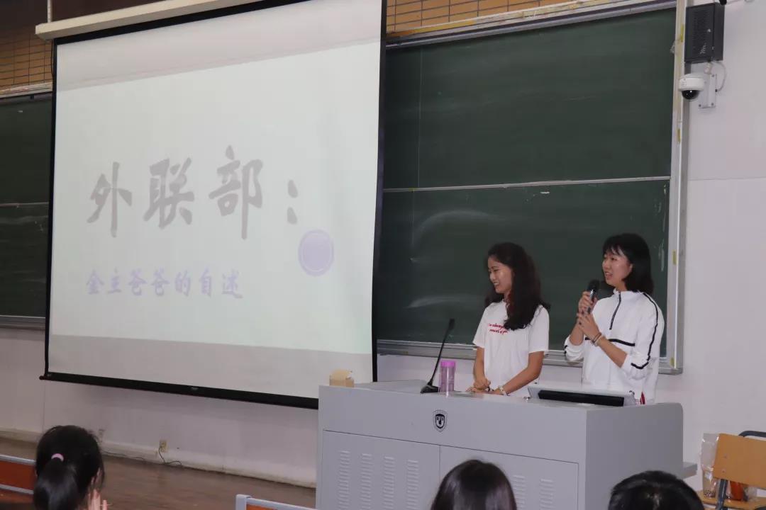 大会第一个登场的是生活部,生活部副部长向同学们介绍了部门的主要职能和招新要求,强调了生活部活动形式丰富,气氛轻松愉快的特点。随后体育部部长以简洁明了的语言介绍了部门的组织成就,鼓励同学们前来报名。接着,媒体部、学习部、宣传部也不甘示弱,列出部门丰厚的福利和各大成就,引起了同学们的强烈兴趣。学生职能部门以文艺部和外联部的宣讲作为结尾,他们以幽默轻松的语言介绍了各自部门,鼓励敢于尝试的同学的加入。