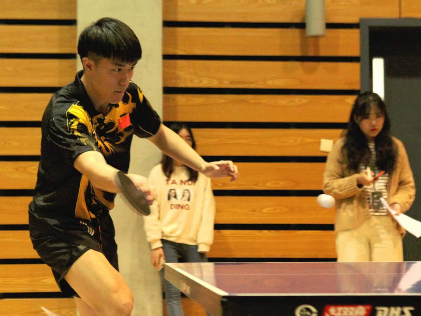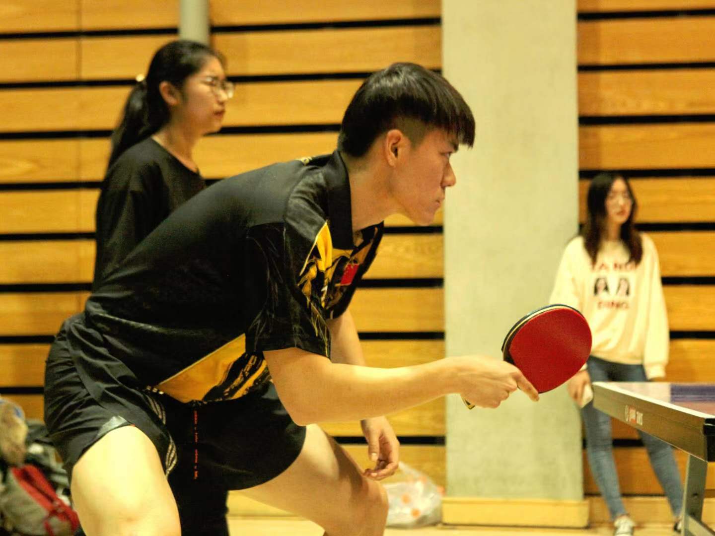 在一路过五关斩六将后,欧语乒顺利进军决赛。在最终这至关重要的一战中,我们遭遇去年的冠军队伍——国商。犹记得上一届比赛中,欧院憾负国商,止步八强。今年,我们是否能够突破自我,走上巅峰呢?比赛开始之前,每个人的心中都充满了这样的忐忑、紧张、期待与渴望。
