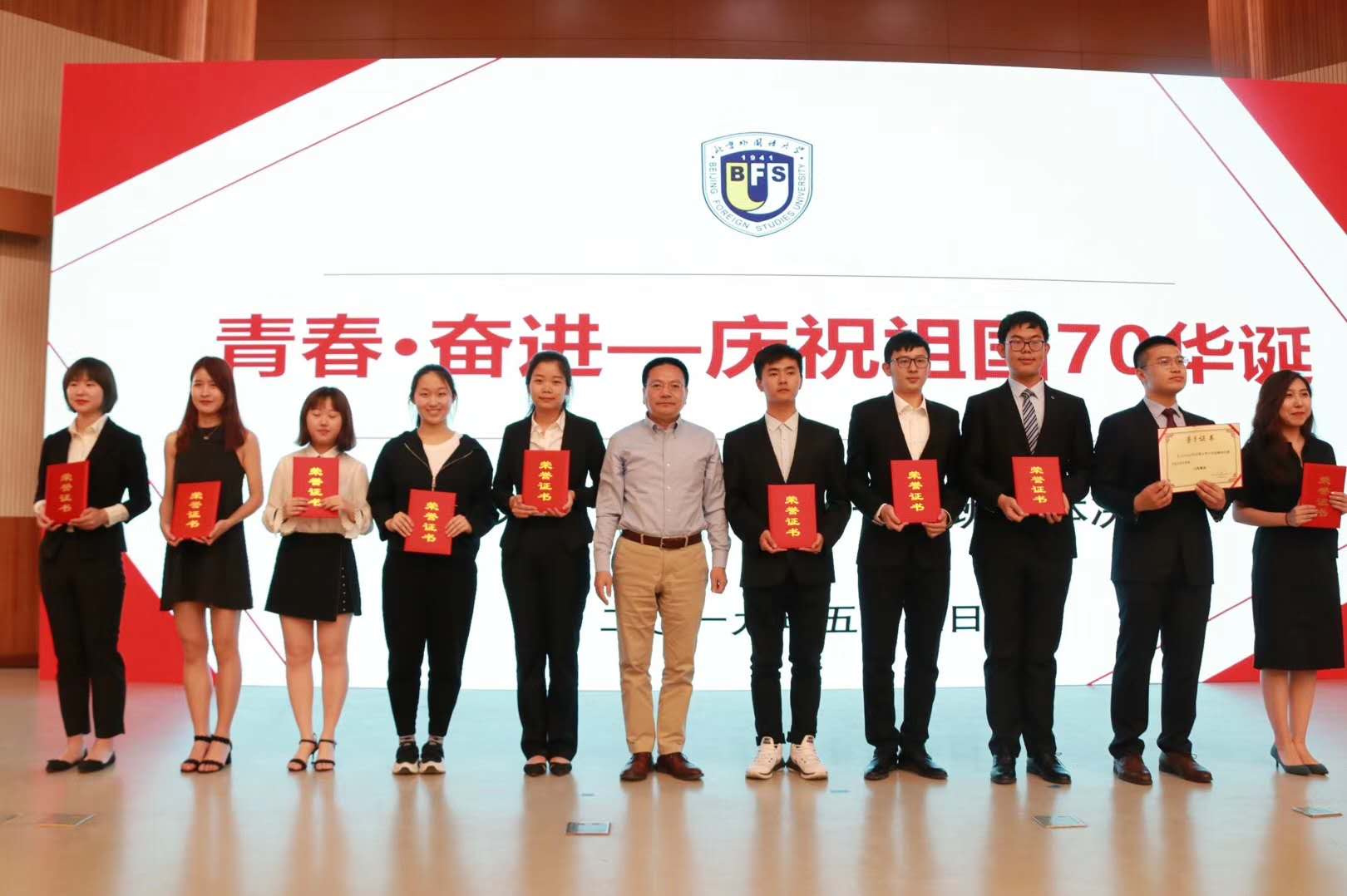 北京外国语大学“十佳班集体”创建评选活动是北外的一项重要传统,受到各院系的高度重视。本次“十佳班集体”评选活动的主题为“青春•奋进——庆祝祖国七十华诞”,全校共有21个班级参加校级评选。比赛分院内举荐、校级初选、校级终选三个评选阶段,历时两个月。