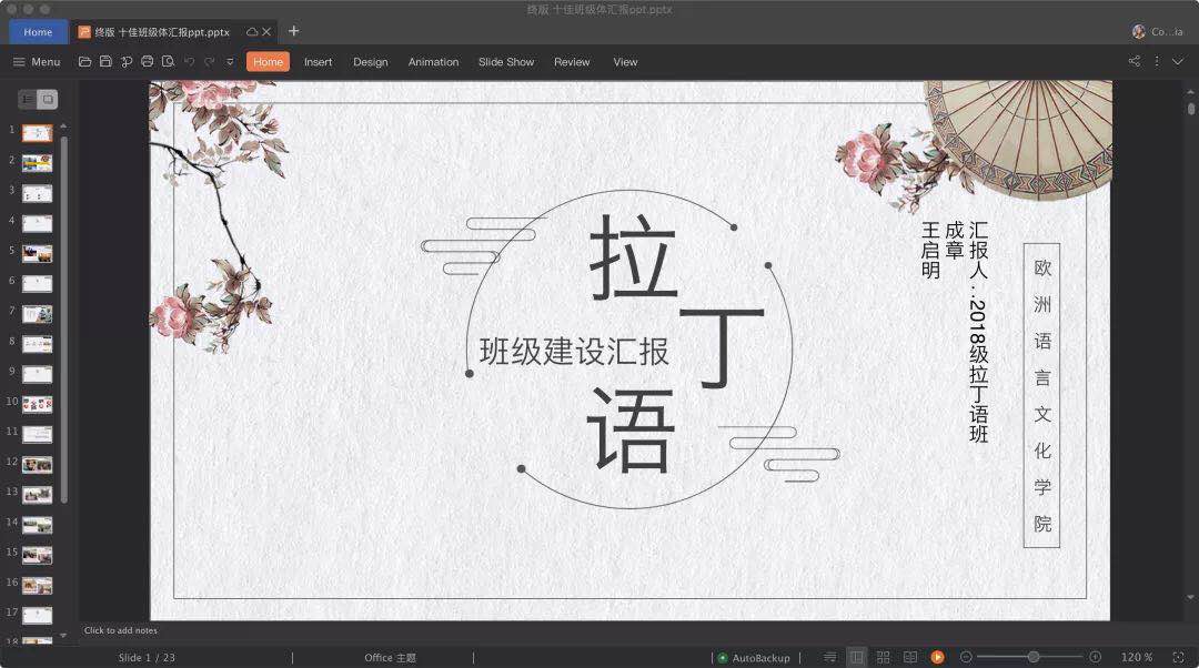 院内举荐阶段,拉丁语班在班主任李慧老师的指导下精心编写《班级建设手册》,明确了班级的“博览古今,沟通中西,心系家国,人文化成”的建设理念,完善了班规的制定和班级发展计划,受到学院领导和辅导员老师的肯定,获得代表学院参加校级比赛的资格。
