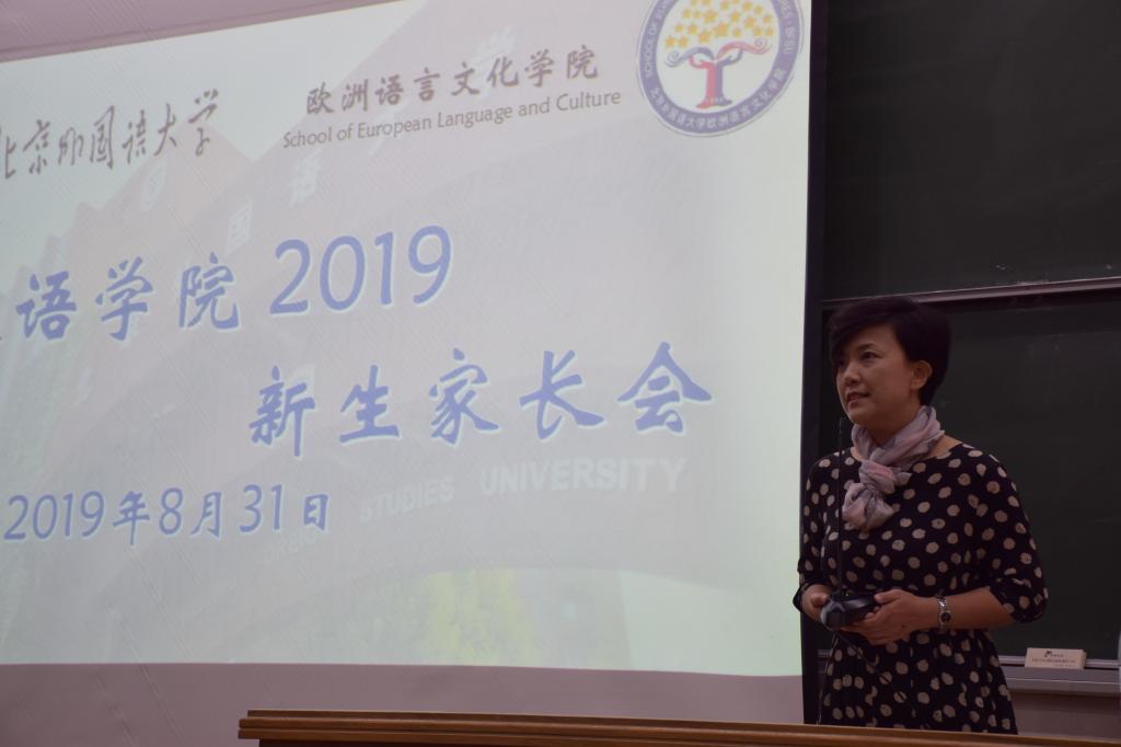 杨文老师首先对各位新生家长表示热烈欢迎,对北京外国语大学和太阳成集团tyc41183的情况做了简要介绍。北外太阳成集团tyc41183是中国开设欧洲非通用语种专业最早、最全、最强的单位,目前已开设25个语种专业,60多年来,培养了一批又一批优秀毕业生。他们遍布在国家外交、外事等各个领域,为中国的外交事业做出了巨大贡献,涌现出了许多优秀校友。近年来,学院在创建教学科研基地,提高人才培养质量,加强各专业教学基础建设,培养欧洲非通用语高级翻译人才等方面取得了一系列重要成就,这些都为太阳成集团tyc41183学生的学习发展提供了良好的条件和环境。杨老师同时介绍了大学生活特点,对大学学习、生活、人际关系、心理健康、就业、安全等各个方面做了具体指导。希望家长与孩子多联系、多沟通,帮助孩子尽快适应大学生活。