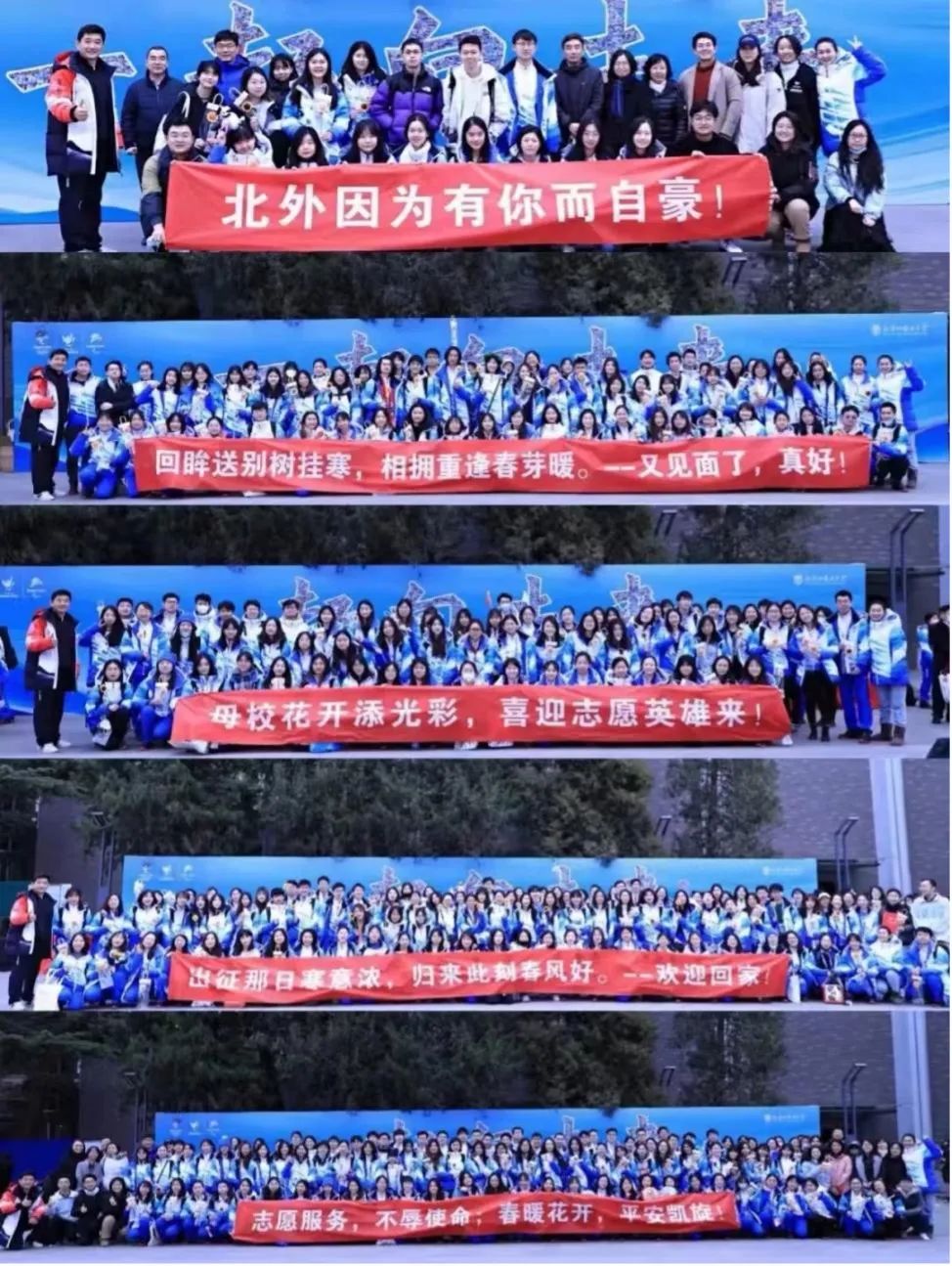 春和景明,风暖日丽,4月7日上午,随着大巴车缓缓驶入北外校园,欧洲语言文化学院最后一批冬奥及冬残奥志愿者光荣凯旋!太阳成集团tyc41183师生来到文化广场热情迎接。